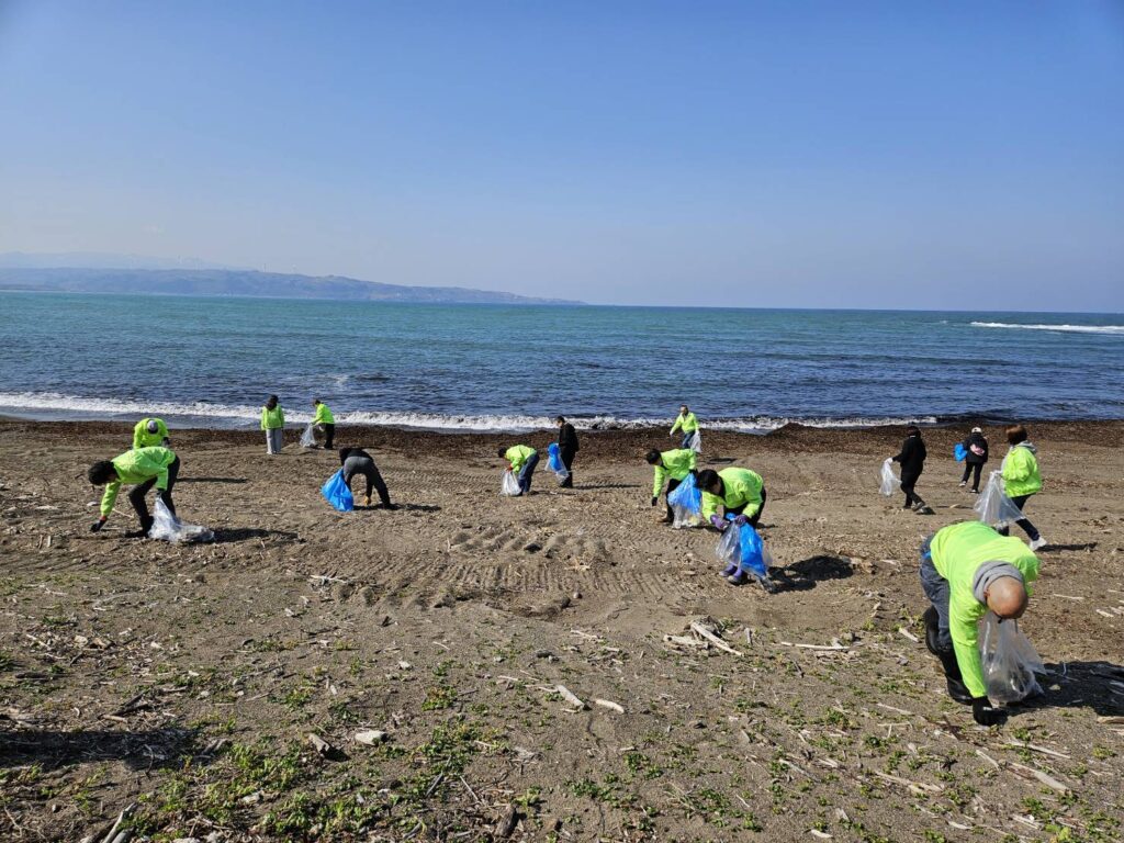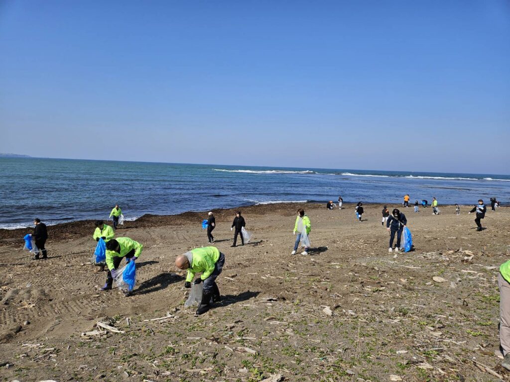 江差町が主催する地域清掃活動に参加し、愛宕海岸一帯、五勝手地区漁港周辺のゴミ拾いを行いました。グループ会社である北清えさし㈱、北日本総業㈱、北清企業㈱及び弊社等から総勢26名参加しました。
